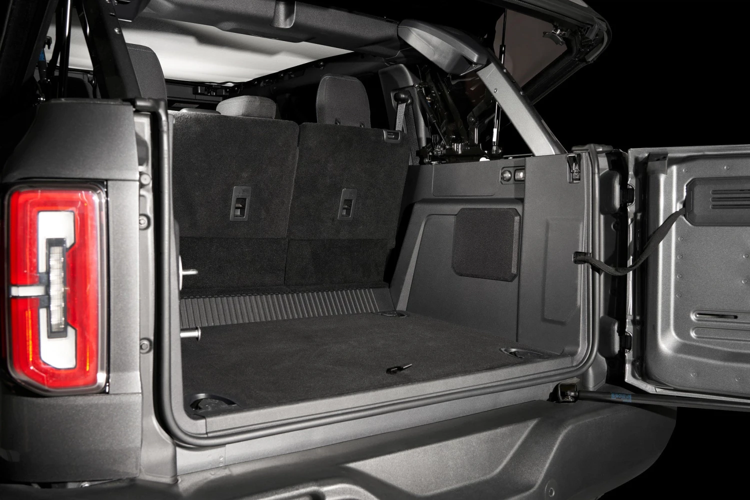 The Hard Data: Contains one 10TW1-2 Subwoofer in a sealed enclosure. 300 watt power handling. Wired for 2 ohm mono. Installs behind factory panel in the passenger side rear cargo area. Subwoofer is protected by a black steel mesh grille and concealed by a cosmetic grille (both included). Installation requires removal of OEM subwoofer, if equipped and permanent modification of the factory panel. Fits 2-Door and 4-Door models. Will not fit Bronco Sport models.