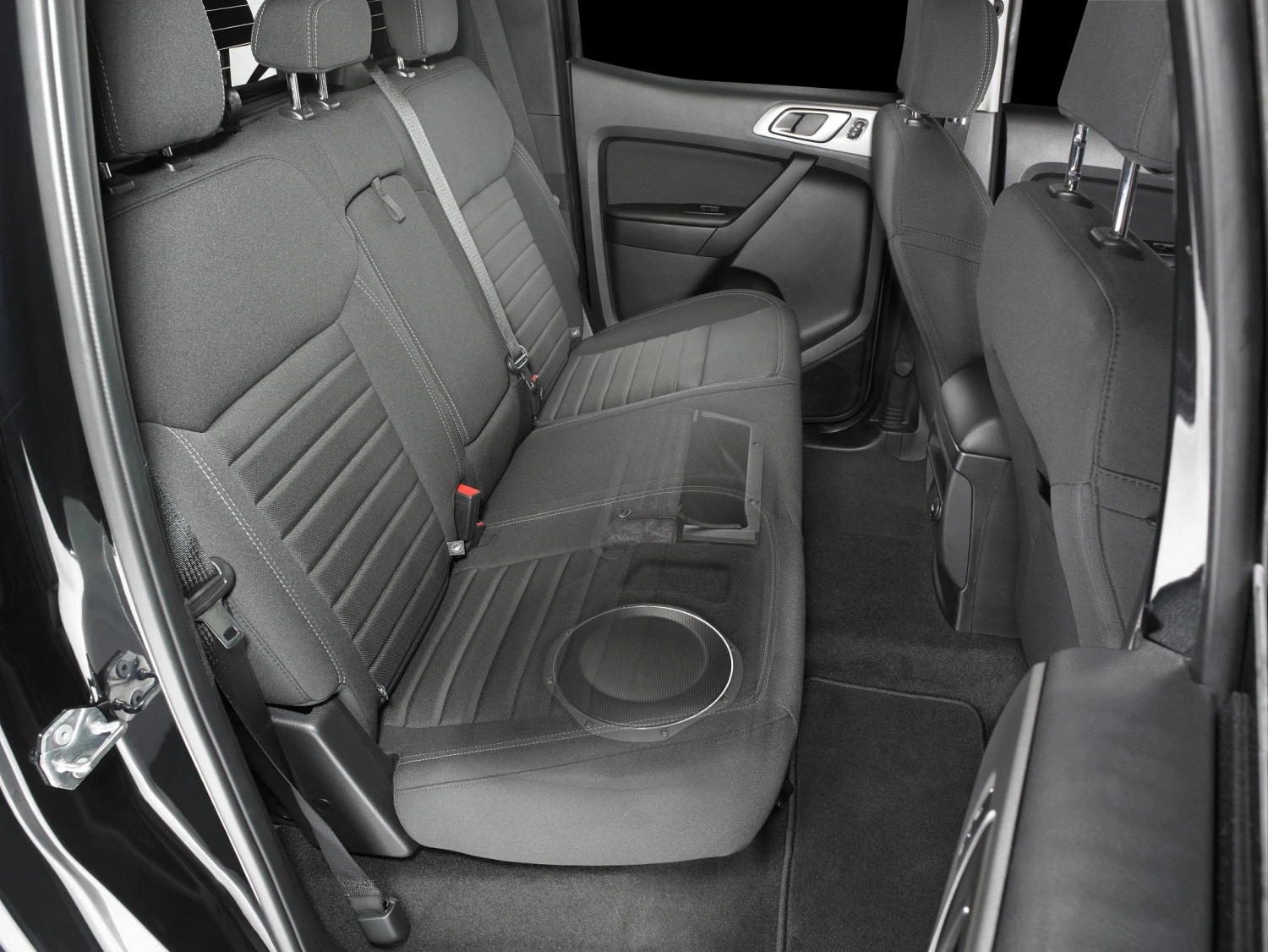 Ford’s mid-sized pickup promises practical utility and performance for everyday commutes or rugged terrains. To make every drive even more enjoyable, our Stealthbox® solution tucks under the rear seat on the passenger side and encloses a 10-inch driver for impressive sub-bass performance. Seat folding is unaffected with plenty of room remaining on the driver side for storage. Best of all, the Stealthbox® virtually disappears once installed.
