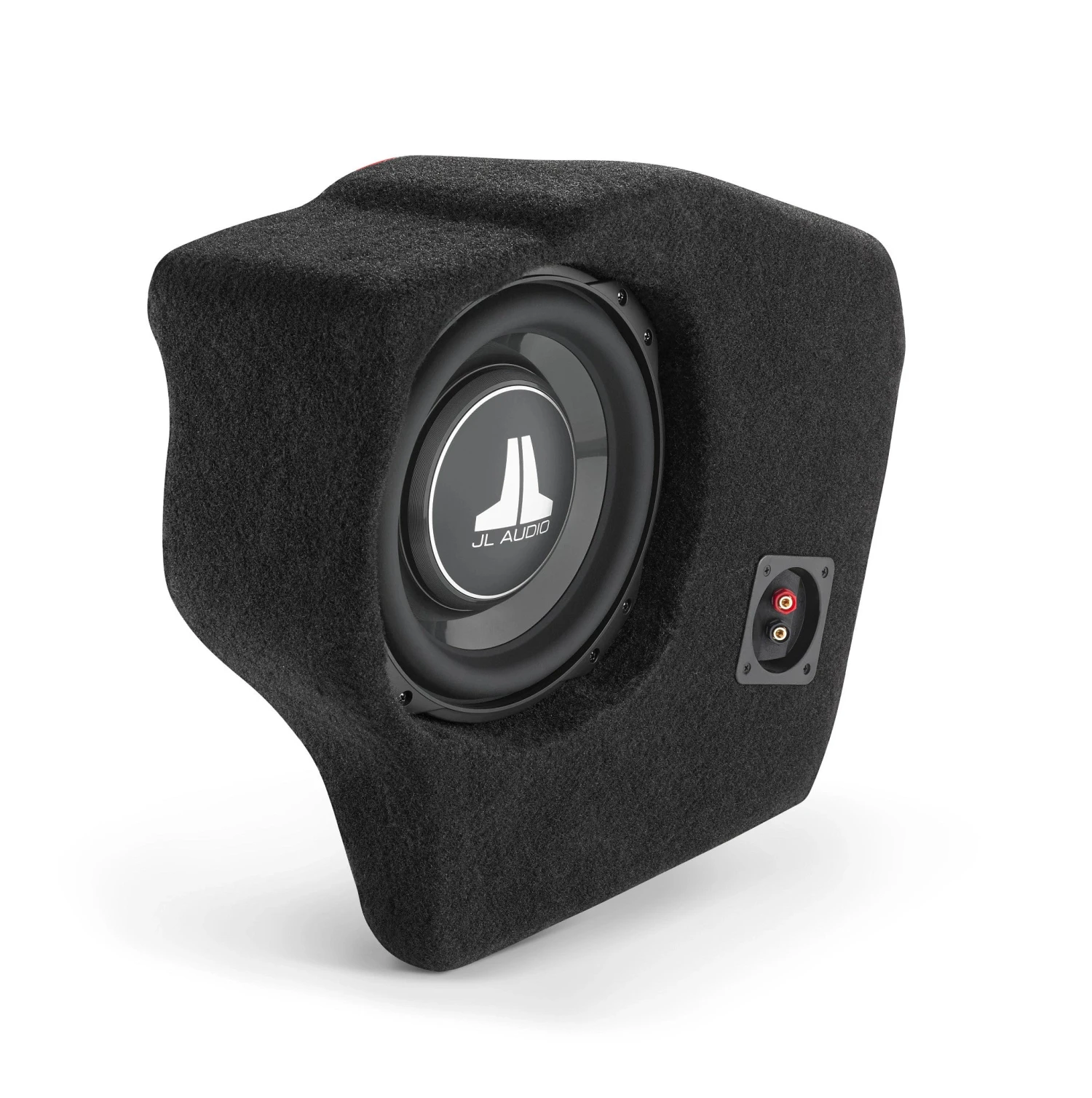 The Hard Data: Contains one 10TW3-D4 in a sealed enclosure. 400 watt power handling. Wired for 2 ohm mono. Stealthbox® installs behind the driver side cargo trim panel. Replaces the OEM “subwoofer” system, if equipped.