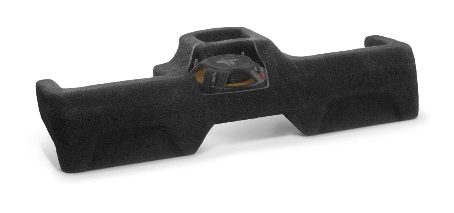 Fortunately, JL Audio’s Stealthbox® design team has arrived at a clever solution that mounts between the jump seats, while also creating separate storage spaces beneath each seat. Equipped with our innovative 10-inch TW3 thin-line subwoofer, this down-firing Stealthbox® features an all-fiberglass, sealed enclosure design and generates loads of great-sounding, deep, bass output.