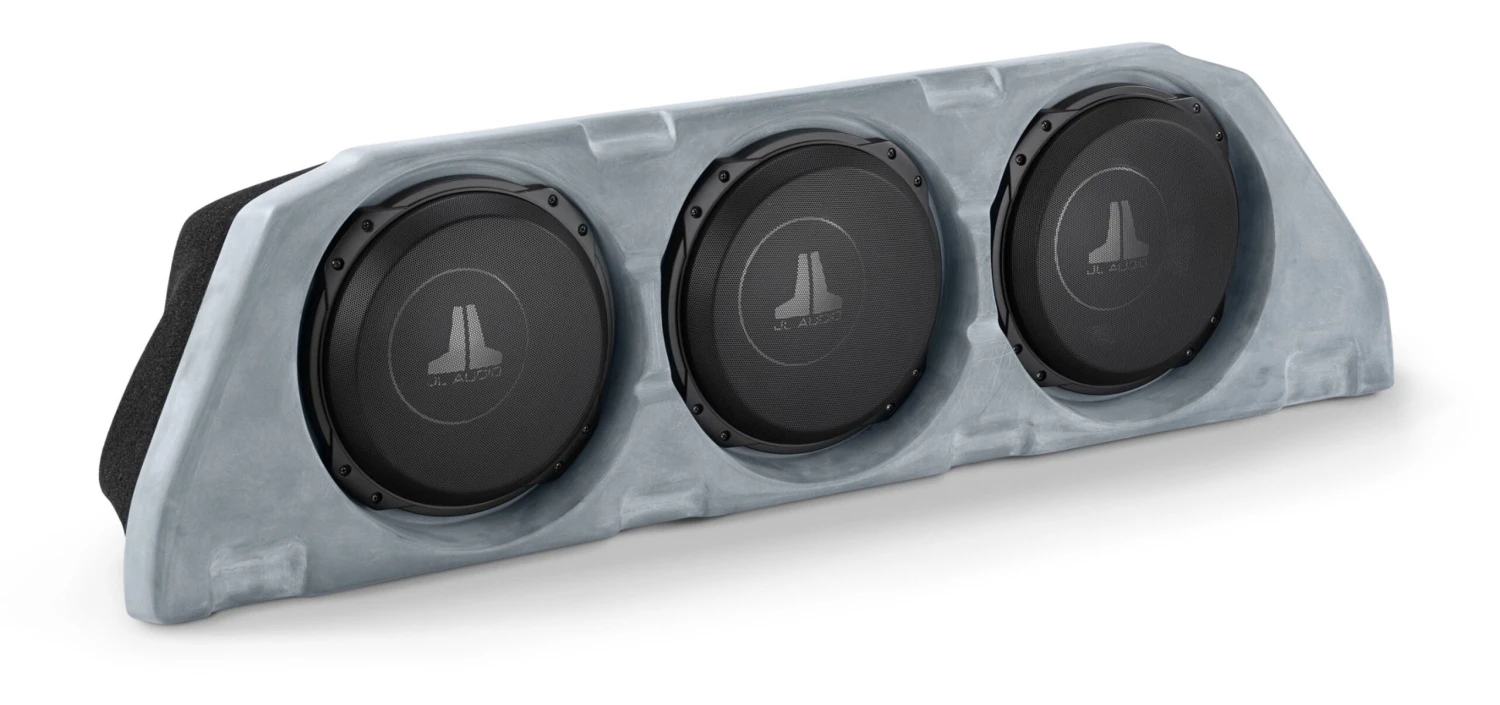 This Stealthbox® is designed for maximum sub-bass performance with its three 10TW3 JL Audio Subwoofers in a 100% fiberglass sealed enclosure. The enclosure is offered finished in a high-grade automotive carpet as well as an unfinished (primered) option which is paint-ready to coordinate with any installation theme.