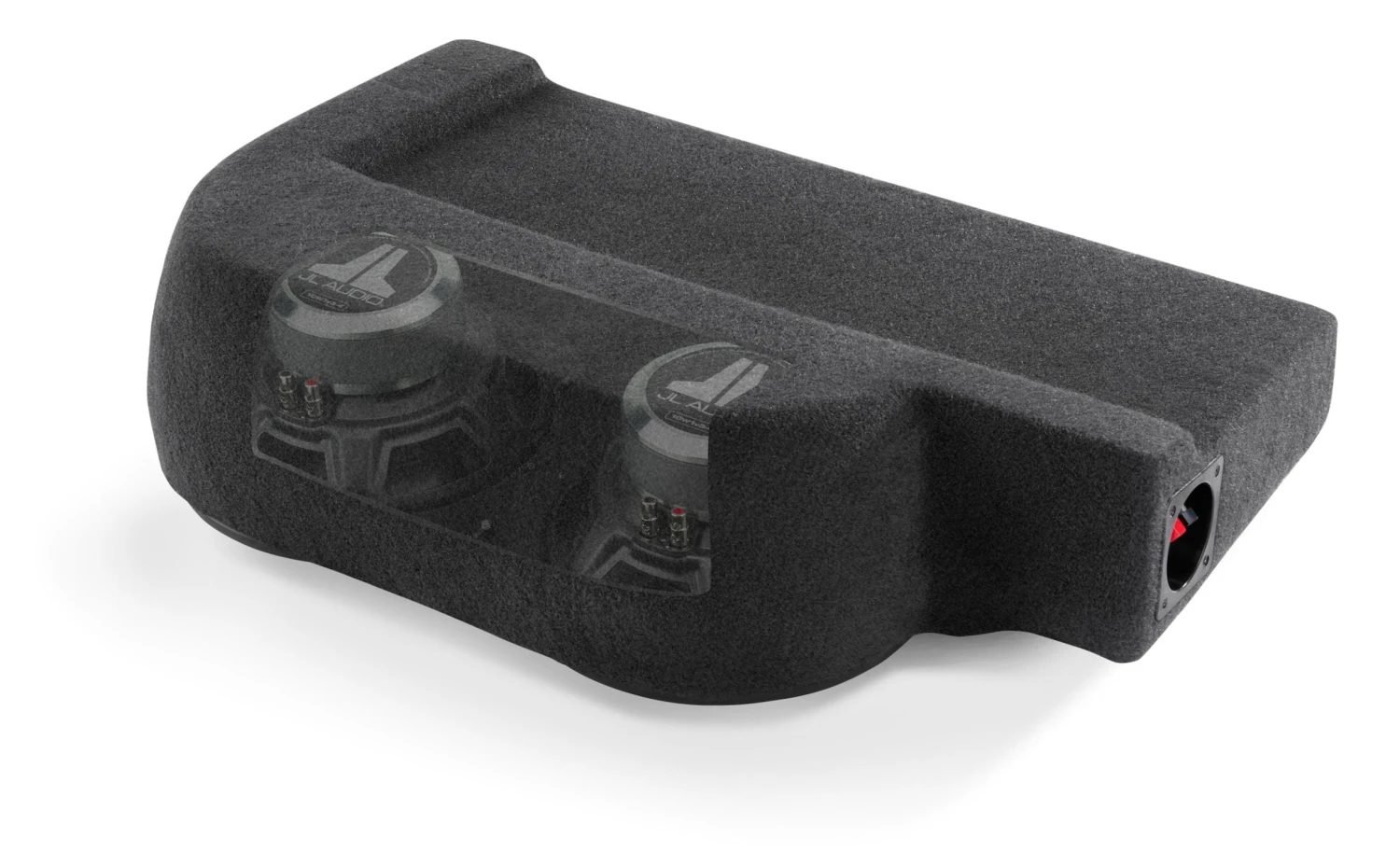 The Stealthbox® installs neatly under the rear seat, leaving plenty of room next to it for amplifier mounting and installation.