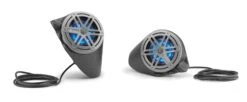 The Hard Data: Contains one pair of MX650-CCX-SGTLD-B marine coaxial speakers with blue LED illumination, each in a sealed, fiberglass enclosure. 60 watt power handling (per channel). 4 ohms per channel. Installs in kick-panels.